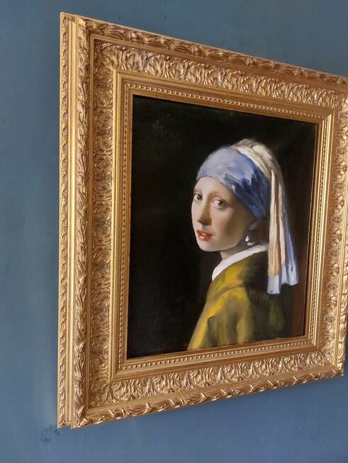 Sprzedam replike oobrazu mistrza J. Vermeer'a "dziewczyna z perla" Obraz namalowany na plotnie Wymiar 39 x 44.5 cm w ...